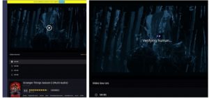 A scam page prompting “human verification” and account registration to watch Stranger Things.