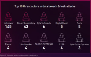 One of the most striking findings is that 33% of breach incidents were attributed to unknown actors. This reflects a notable evolution, increased operational security, short lived infrastructure, and a shift toward decentralized identities and burner accounts. The growing difficulty of attribution suggests attackers are becoming more sophisticated in masking their footprints across the deep and dark web.